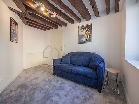 SoggiornoQuesto appartamento é composto di un bello salone con del parquet al suolo vista su strada. Questo salone molto calmo é ammobiliato e equipaggiato per rendere il tuo soggiorno piacevole : televisione, divano, tavola da pranzo, tavolino, scrivania, biblioteca, armadio, trave, 1 sedia (e)1 divano letto.