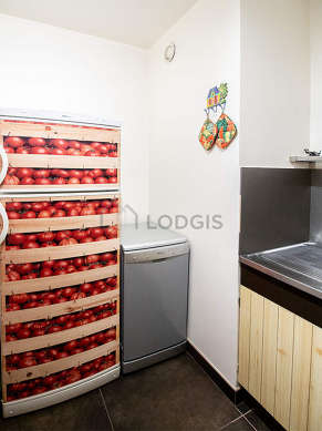 Questo appartamento dispone di una bella cucina con del piastrelle al suolo e tutto l'equipaggiamento essenziale per la vita quotidiana : piani di cottura, frigorifero, forno, congelatore, cappa di aspirazione, tostapane, bollitore elettrico, caffettiera, scaffale, armadio, stoviglie.