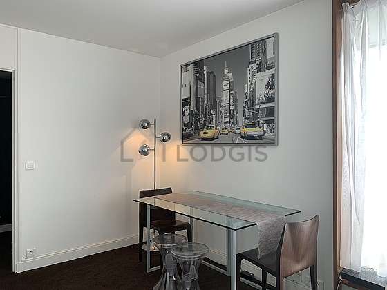 Questo appartamento é composto di un attraente salone con della moquette al suolo e delle finestras anti-rumore. Questo salone molto calmo é ammobiliato e equipaggiato per rendere il tuo soggiorno piacevole : televisione, coperte, divano, tavola da pranzo, tavolino, 2 sedia (e), sgabello, tv stand1 letto.