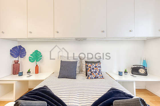 SoggiornoQuesto appartamento é composto di un superbo salone con del parquet al suolo vista su strada. Questo salone calmo é ammobiliato e equipaggiato per rendere il tuo soggiorno piacevole : frigorifero, divano, 1 poltrona (e), scrivania, scaffale, armadio, 1 sedia (e), floor lamp, tv stand, mirror, painting, vase.