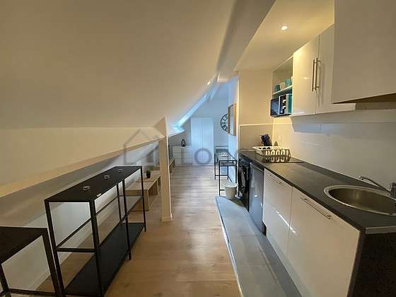 Questo appartamento dispone di una magnifica cucina con del parquet al suolo e tutto l'equipaggiamento necessario per la vita quotidiana : piani di cottura, frigorifero, congelatore, microonde multifunzione, stoviglie.