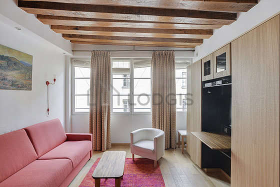 SoggiornoQuesto appartamento é composto di un bello salone con del parquet al suolo e delle finestras anti-rumore. Questo salone molto calmo é ammobiliato e equipaggiato per rendere il tuo soggiorno piacevole : televisione, lenzuola, coperte, frigorifero, 1 poltrona (e), tavola da pranzo, tavolino, scrivania, guardaroba, biblioteca, scaffale, armadio, armadio, stoviglie, 1 sedia (e), comodino, tv stand, mirror, coat stand, bin, carpet1 divano letto.