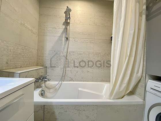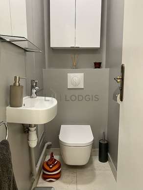 Questo appartamento é equipaggiato di un bagno magnifica e molto chiaro. Questo bagno é dotato di tutto il necessario per il tuo benessere quotidiano : scaffale, armadio, vasca da bagno, sink, sink. Il WC é separato dal bagno ed é situato in un locale indipendente.