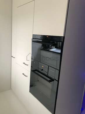 Questo appartamento dispone di una magnifica cucina con del piastrelle al suolo e tutto l'equipaggiamento necessario per la vita quotidiana : piani di cottura, frigorifero, congelatore, forno, forno microonde, cappa di aspirazione, tostapane, bollitore elettrico, caffettiera, scaffale, armadio, stoviglie.