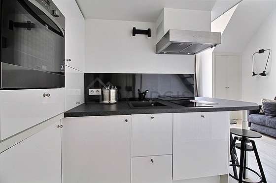 Questo appartamento dispone di una magnifica cucina con del parquet al suolo e tutto l'equipaggiamento indispensabile per la vita quotidiana : piani di cottura, frigorifero, forno, microonde multifunzione, cappa di aspirazione, tostapane, armadio, stoviglie, 1 sedia (e).