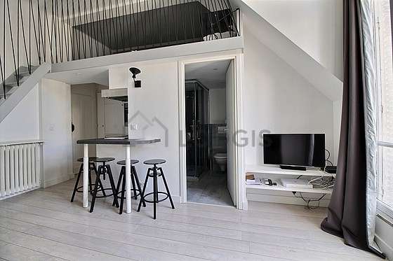 SoggiornoQuesto appartamento é composto di un superbo salone con del parquet al suolo e delle finestras. Questo salone molto calmo é ammobiliato e equipaggiato per rendere il tuo soggiorno piacevole : televisione, lenzuola, coperte, divano, tavola da pranzo, scaffale, armadio, sgabello, bar, painting1 letto.