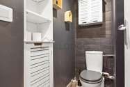 Questo loft é equipaggiato di un bagno. Questo bagno é dotato di tutto il necessario per il tuo benessere quotidiano : como', doccia, asciugacapelli, pompa d'evacuazione, sink, mirror, towel rack, bin, radiatore porta asciugamani. Il WC é integrato nel bagno