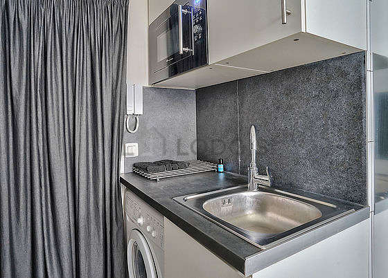 Questo appartamento dispone di una magnifica cucina con del piastrelle al suolo e tutto l'equipaggiamento essenziale per la vita quotidiana : forno microonde.