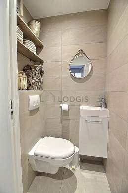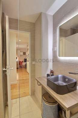 Questo appartamento é equipaggiato di un bagno magnifica e molto chiaro. Questo bagno é dotato di tutto il necessario per il tuo benessere quotidiano : doccia, sink. Il WC é separato dal bagno ed é situato in un locale indipendente.