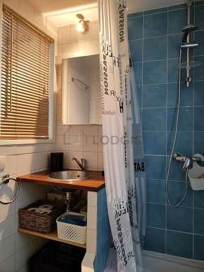 Questo appartamento é equipaggiato di un bagno piacevole e chiaro. Questo bagno é dotato di tutto il necessario per il tuo benessere quotidiano : asciugamani da bagno, scaffale, asciugacapelli, airer, sink, mirror, towel rack, bin, radiatore porta asciugamani. Il WC é integrato nel bagno