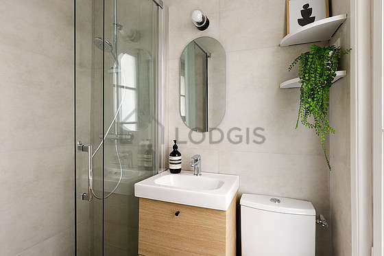 Questo appartamento é equipaggiato di un bagno. Questo bagno é dotato di tutto il necessario per il tuo benessere quotidiano : asciugamani da bagno, doccia, asciugacapelli, sink, mirror, coat stand, ventilator. Il WC é integrato nel bagno
