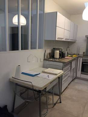 Questo appartamento dispone di una magnifica cucina adiacent al soggiorno con del piastrelle al suolo e tutto l'equipaggiamento necessario per la vita quotidiana : televisione, piani di cottura, frigorifero, congelatore, forno, forno microonde, congelatore, cappa di aspirazione, tostapane, bollitore elettrico, caffettiera, tavola da pranzo, scaffale, armadio, stoviglie, 2 sedia (e), dessert plates, plates, bowl, casserole dish, cooking knives, bread knife, lid, cutlery, wooden spoon, hot plate, peeler, airer, lamp, mixer, sieve, chopping board, work surface, stove, bin, coffee cups, tea cups, vase, water glass, wine glass.