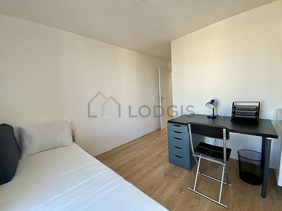 Con del parquet al suolo questa camera splendida offre l'equipaggiamento necessario per riposarti durante il tuo soggiorno : coperte, scrivania, armadio, 1 sedia (e), lamp, bin1 letto.