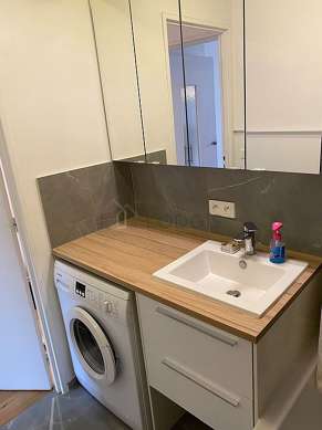 Questo appartamento é equipaggiato di un bagno. Questo bagno é dotato di tutto il necessario per il tuo benessere quotidiano : armadio, vasca da bagno, sink, mirror. Il WC é separato dal bagno ed é situato in un locale indipendente.