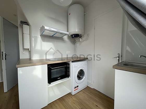 Questo appartamento dispone di una cucina e tutto l'equipaggiamento indispensabile per la vita quotidiana : piani di cottura, forno, tavola da pranzo, armadio, 2 sedia (e).