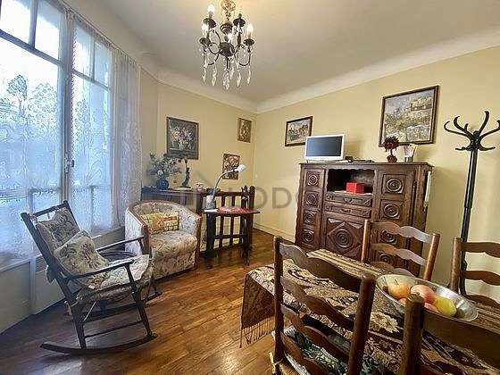 SoggiornoQuesto appartamento é composto di un attraente salone con del parquet al suolo e delle finestras e vista su strada. Questo salone molto calmo é ammobiliato e equipaggiato per rendere il tuo soggiorno piacevole : televisione, divano, 2 poltrona (e), tavola da pranzo, scrivania, como', 4 sedia (e), coat stand, curtains, painting.