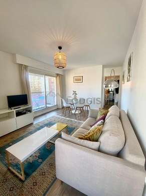 Questo appartamento é composto di un magnifico salone con del parquet al suolo. Questo salone molto calmo é ammobiliato e equipaggiato per rendere il tuo soggiorno piacevole : televisione, lenzuola, coperte, divano, tavola da pranzo, tavolino, scrivania, armadio, 5 sedia (e), floor lamp, lamp, tv stand, mirror, curtains, painting, carpet1 divano letto.
