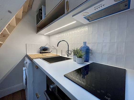 Questo appartamento dispone di una cucina e tutto l'equipaggiamento indispensabile per la vita quotidiana : piani di cottura, frigorifero, forno, forno microonde, congelatore, cappa di aspirazione, bollitore elettrico, caffettiera, armadio, stoviglie.