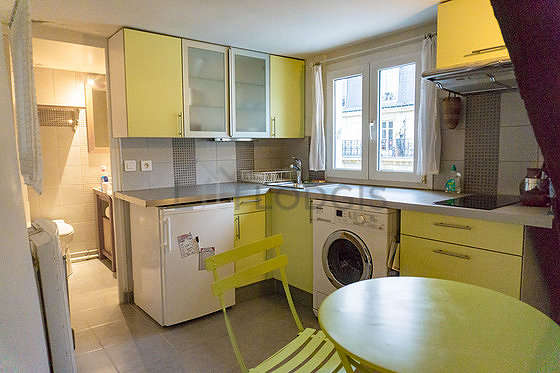 Questo appartamento dispone di una cucina adiacent al soggiorno e tutto l'equipaggiamento indispensabile per la vita quotidiana : piani di cottura, frigorifero, congelatore, forno, forno microonde, bollitore elettrico, caffettiera, tavola da pranzo, armadio, stoviglie, 1 sedia (e).