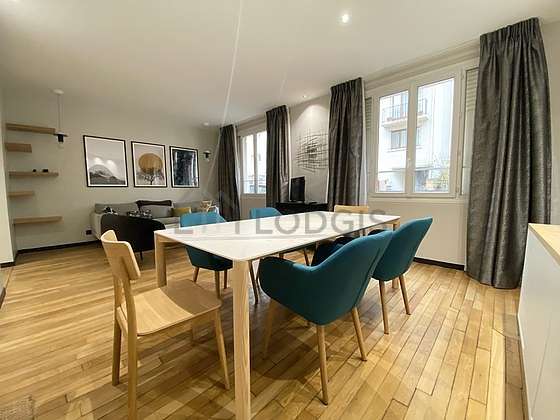 SoggiornoQuesto appartamento é composto di un bello salone con del parquet al suolo e delle finestras anti-rumore e vista su strada. Questo salone calmo é ammobiliato e equipaggiato per rendere il tuo soggiorno piacevole : televisione, divano, 1 poltrona (e), scaffale, 6 sedia (e).