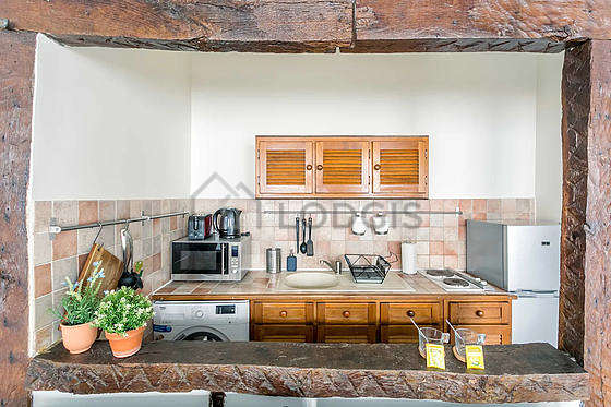 Questo appartamento dispone di una cucina e tutto l'equipaggiamento essenziale per la vita quotidiana : piani di cottura, frigorifero, congelatore, forno, forno microonde, tostapane, bollitore elettrico, caffettiera, armadio, stoviglie.