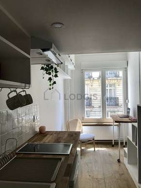 Questo appartamento dispone di una magnifica cucina con del parquet al suolo e tutto l'equipaggiamento indispensabile per la vita quotidiana : piani di cottura, frigorifero, forno microonde, scaffale, stoviglie.