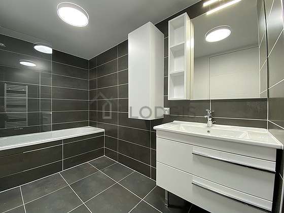 Questo appartamento é equipaggiato di un bagno. Questo bagno é dotato di tutto il necessario per il tuo benessere quotidiano : armadio, vasca da bagno, sink, radiatore porta asciugamani. Il WC é separato dal bagno ed é situato in un locale indipendente.