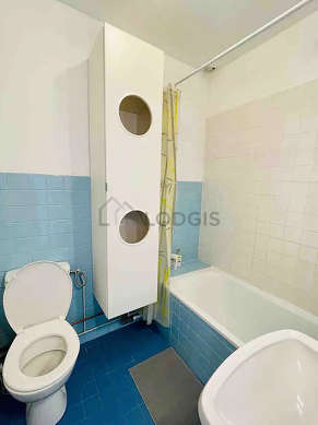 Questo appartamento é equipaggiato di un bagno. Questo bagno é dotato di tutto il necessario per il tuo benessere quotidiano : asciugamani da bagno, armadio, vasca da bagno, asciugacapelli, airer, sink, sink, mirror. Il WC é integrato nel bagno