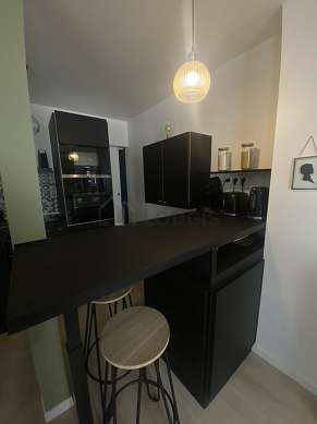 Questo appartamento dispone di una cucina con del parquet al suolo e tutto l'equipaggiamento necessario per la vita quotidiana : piani di cottura, frigorifero, congelatore, forno, forno microonde, tostapane, bollitore elettrico, caffettiera, armadio, stoviglie, 1 sedia (e), bar.