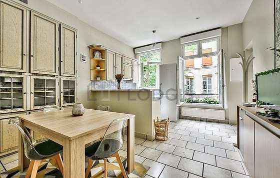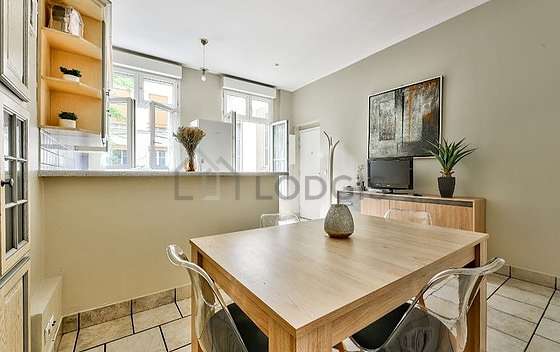 Per condividere un pasto conviviale durante il tuo soggiorno parigino, questo appartamento dispone di una magnifica sala da pranzo che puo' accogliere fino a 4 ospiti grazie a televisione, tavola da pranzo, armadio, 4 sedia (e), tv stand.