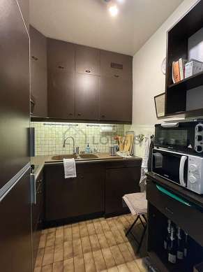 Questo appartamento dispone di una cucina con del piastrelle al suolo e tutto l'equipaggiamento necessario per la vita quotidiana : piani di cottura, frigorifero, congelatore, forno, forno microonde, cappa di aspirazione, tostapane, bollitore elettrico, caffettiera, stoviglie.