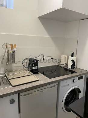 Questo appartamento dispone di una cucina e tutto l'equipaggiamento essenziale per la vita quotidiana : piani di cottura, frigorifero, congelatore, forno microonde, bollitore elettrico, caffettiera, stoviglie.