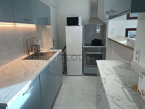 Questo appartamento dispone di una cucina e tutto l'equipaggiamento indispensabile per la vita quotidiana : piani di cottura, forno, microonde multifunzione, congelatore, cappa di aspirazione, tostapane, bollitore elettrico, caffettiera, tavola da pranzo, scaffale, como', armadio, 1 sedia (e), bar.
