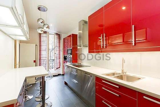 Questo appartamento dispone di una cucina e tutto l'equipaggiamento necessario per la vita quotidiana : piani di cottura, frigorifero, forno, forno microonde, cappa di aspirazione, tostapane, bollitore elettrico, caffettiera, stoviglie, sgabello, bar.