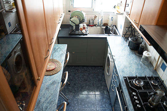 Questo appartamento dispone di una magnifica cucina con del piastrelle al suolo e tutto l'equipaggiamento essenziale per la vita quotidiana : frigorifero, congelatore, forno, caffettiera, tavola da pranzo, scaffale, armadio, armadio, stoviglie, robot da cucina, 1 sedia (e), ventilator.
