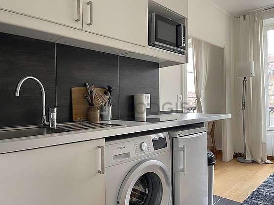 Questo appartamento dispone di una cucina e tutto l'equipaggiamento indispensabile per la vita quotidiana : frigorifero, congelatore, forno, forno microonde, stoviglie.