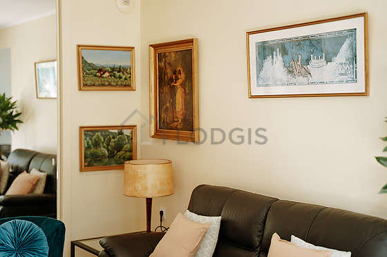 Questo appartamento é composto di un magnifico salone con del parquet al suolo e delle finestras anti-rumore. Questo salone molto calmo é ammobiliato e equipaggiato per rendere il tuo soggiorno piacevole : televisione, divano, 1 poltrona (e), tavola da pranzo, tavolino, guardaroba, como', armadio, 1 sedia (e), tv stand, mirror, pouffe, painting, carpet, vase.