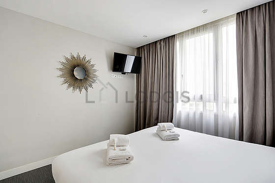 Delle finestras questa camera attraente offre l'equipaggiamento necessario per riposarti durante il tuo soggiorno : televisione, lenzuola, coperte, armadio, comodino1 letto.