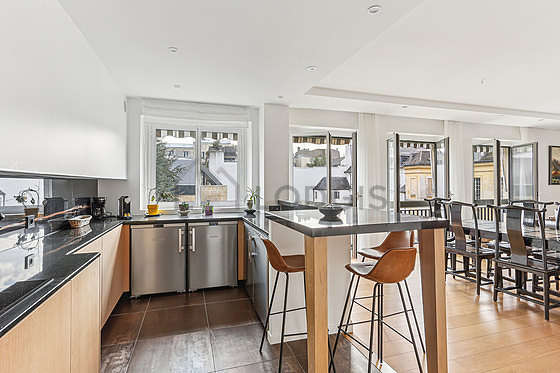Questo appartamento dispone di una cucina e tutto l'equipaggiamento essenziale per la vita quotidiana : piani di cottura, frigorifero, congelatore, forno, forno microonde, cappa di aspirazione, tostapane, caffettiera, stoviglie, sgabello, bar.
