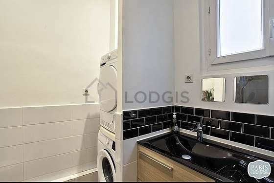 Questo appartamento é equipaggiato di un bagno magnifica e molto chiaro. Questo bagno é dotato di tutto il necessario per il tuo benessere quotidiano : asciugacapelli, sink, mirror, towel rack, bin. Il WC é integrato nel bagno