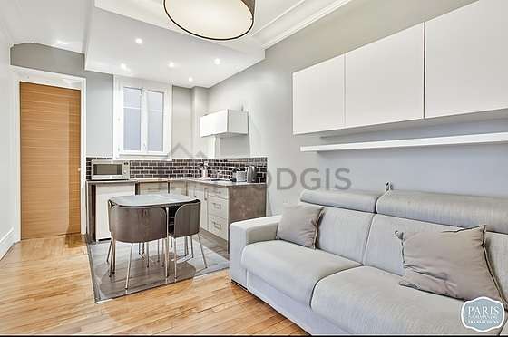 Questo appartamento dispone di una magnifica cucina con del parquet al suolo e tutto l'equipaggiamento essenziale per la vita quotidiana : piani di cottura, frigorifero, forno microonde, tostapane, caffettiera, tavola da pranzo, armadio, armadio, 1 sedia (e), bin.