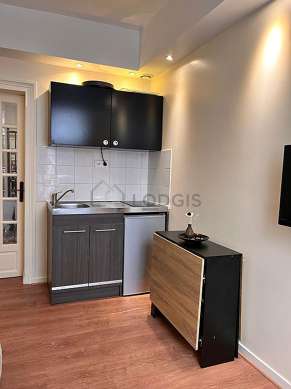 Questo appartamento dispone di una cucina e tutto l'equipaggiamento necessario per la vita quotidiana : piani di cottura, frigorifero, congelatore, tavola da pranzo, armadio, armadio, stoviglie, 1 sedia (e).