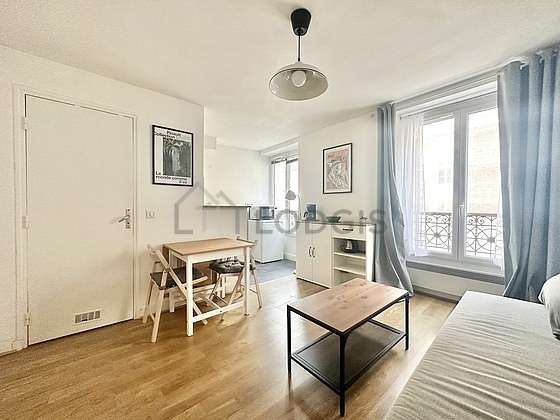 SoggiornoQuesto appartamento é composto di un piacevole salone con del parquet al suolo e delle finestras e vista su strada. Questo salone calmo é ammobiliato e equipaggiato per rendere il tuo soggiorno piacevole : tavola da pranzo, tavolino, como', 1 sedia (e)1 divano letto.