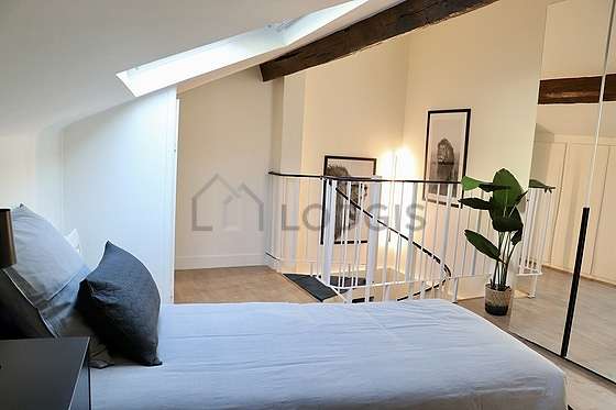 Delle finestras anti-rumore questa camera spazioso offre l'equipaggiamento necessario per riposarti durante il tuo soggiorno : lenzuola, guardaroba, armadio, armadio, comodino, floor lamp, pouffe, painting.