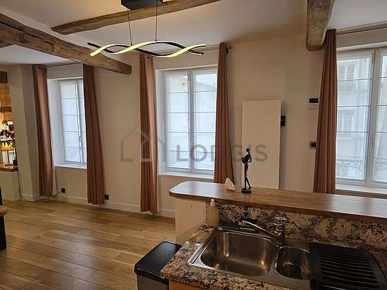 SoggiornoQuesto appartamento é composto di un attraente salone con del parquet al suolo e delle finestras. Questo salone calmo é ammobiliato e equipaggiato per rendere il tuo soggiorno piacevole : televisione, divano, tavola da pranzo, tavolino, biblioteca, scaffale, 1 sedia (e).