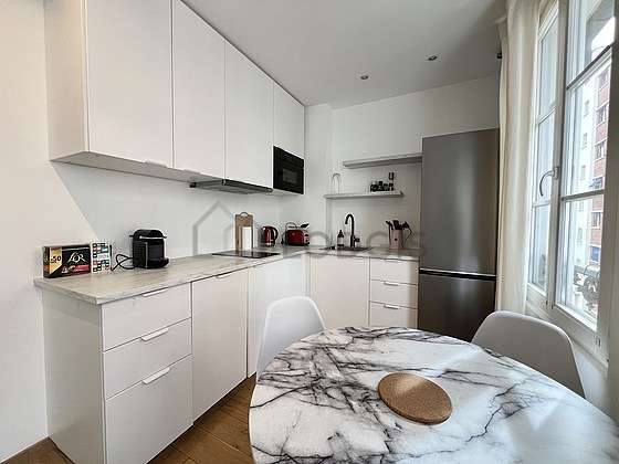 Questo appartamento dispone di una cucina e tutto l'equipaggiamento indispensabile per la vita quotidiana : piani di cottura, congelatore, forno, microonde multifunzione, cappa di aspirazione, bollitore elettrico, caffettiera, stoviglie, sink.