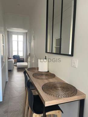 SoggiornoQuesto appartamento é composto di un superbo salone con del piastrelle al suolo e delle finestras. Questo salone molto calmo é ammobiliato e equipaggiato per rendere il tuo soggiorno piacevole : televisione, divano, tavola da pranzo, tavolino, 1 sedia (e)1 letto.