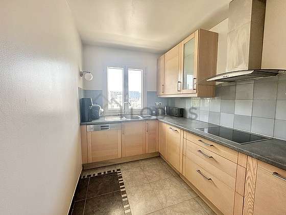 Questo appartamento dispone di una bella cucina con del piastrelle al suolo e tutto l'equipaggiamento necessario per la vita quotidiana : piani di cottura, frigorifero, congelatore, forno, forno microonde, cappa di aspirazione, aspirapolvere, tostapane, bollitore elettrico, caffettiera, armadio, stoviglie, sink, bin.