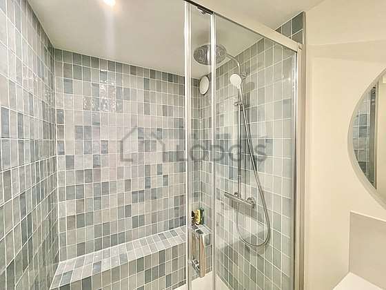 Questo appartamento é equipaggiato di un bagno magnifica e molto chiaro. Questo bagno é dotato di tutto il necessario per il tuo benessere quotidiano : doccia, radiatore porta asciugamani. Il WC é integrato nel bagno