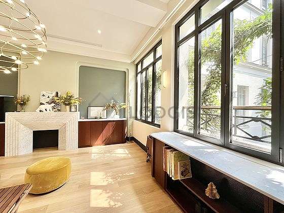Questo appartamento é composto di un superbo salone con del parquet al suolo vista su cortile. Questo salone molto calmo é ammobiliato e equipaggiato per rendere il tuo soggiorno piacevole : home cinema, televisione, divano, tavola da pranzo, como', armadio, camino, 1 sedia (e), entry way table, floor lamp, chandelier.
